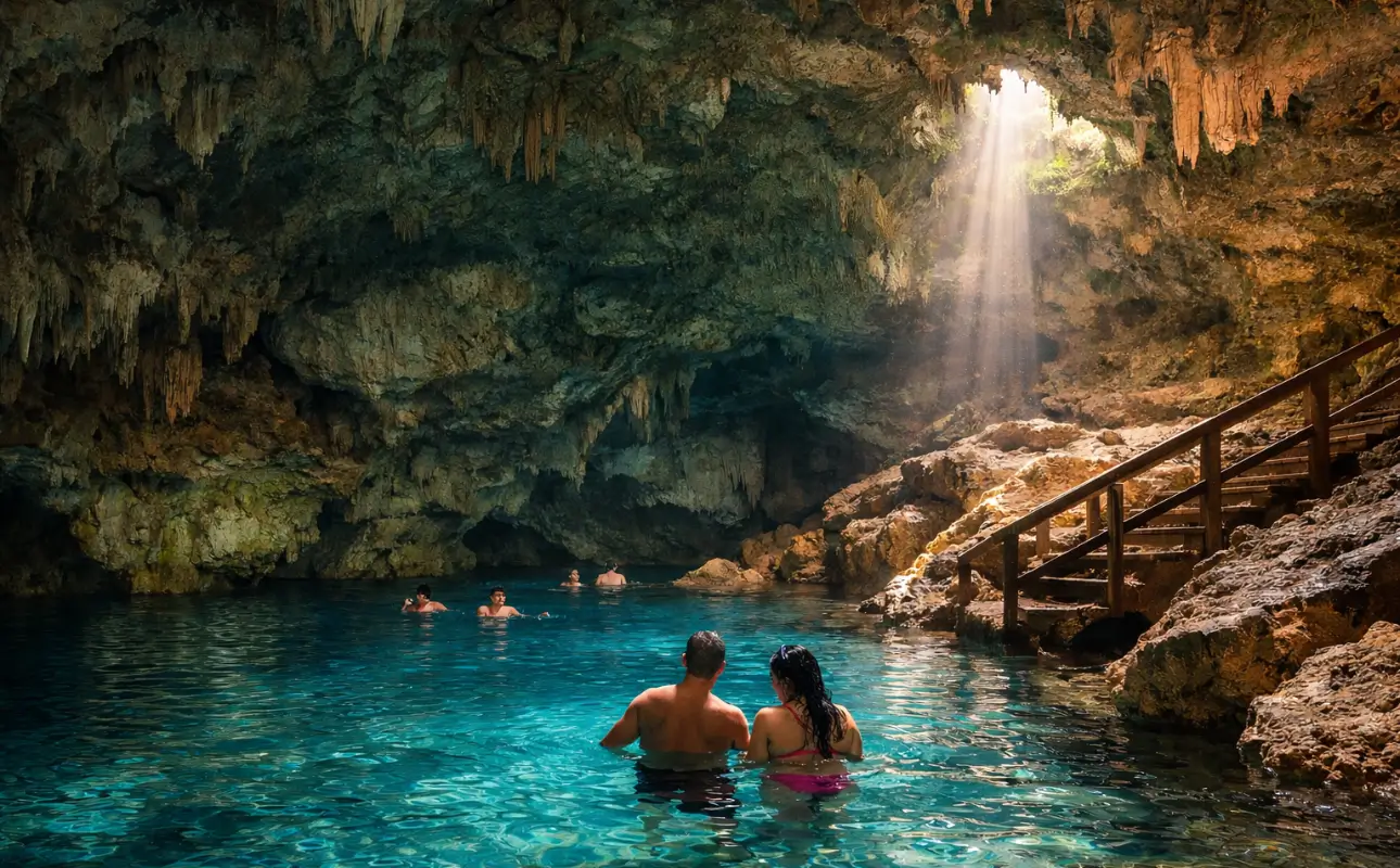 Swim in a natural underground cave and refresh yourself during the adventure.